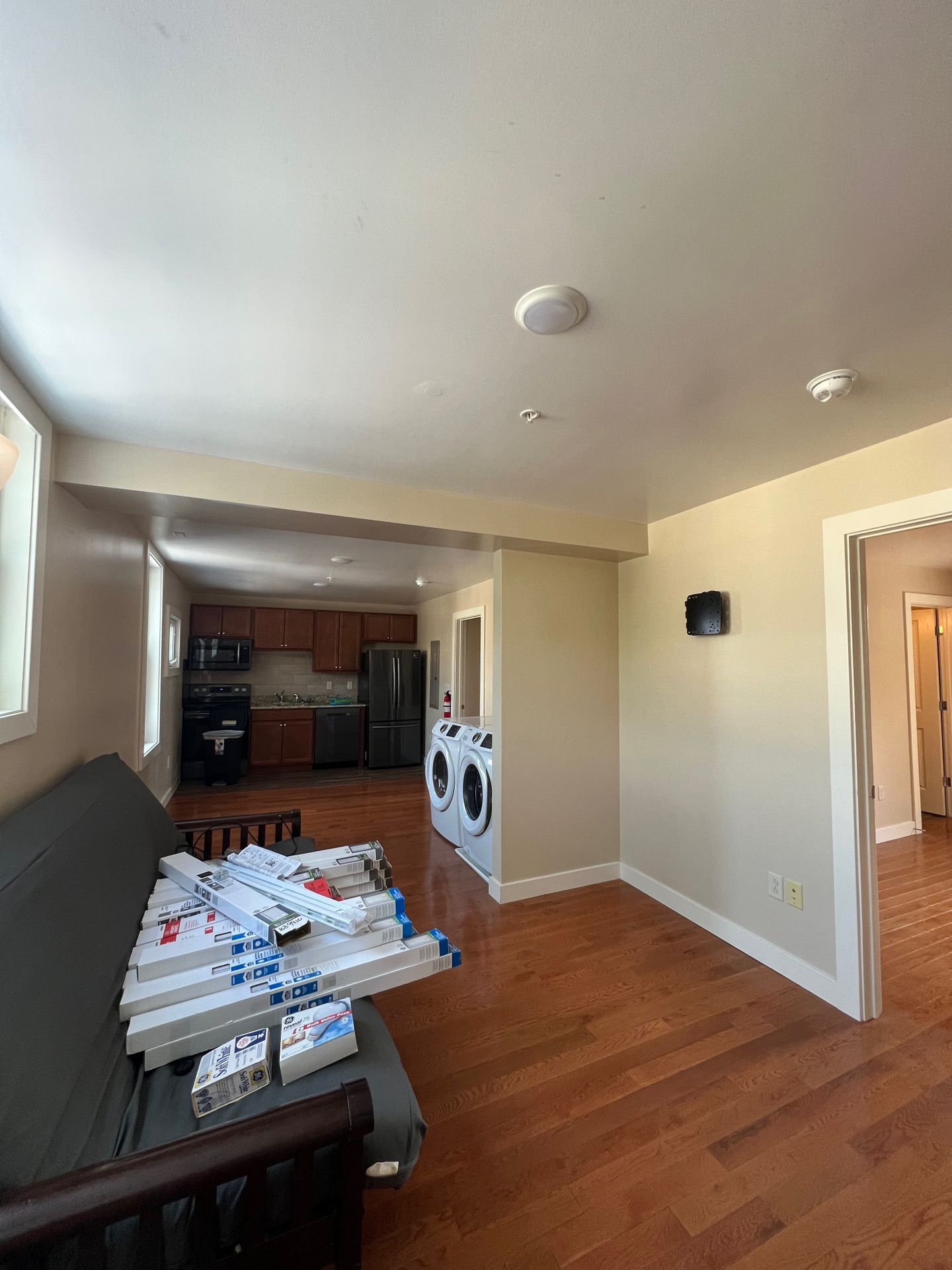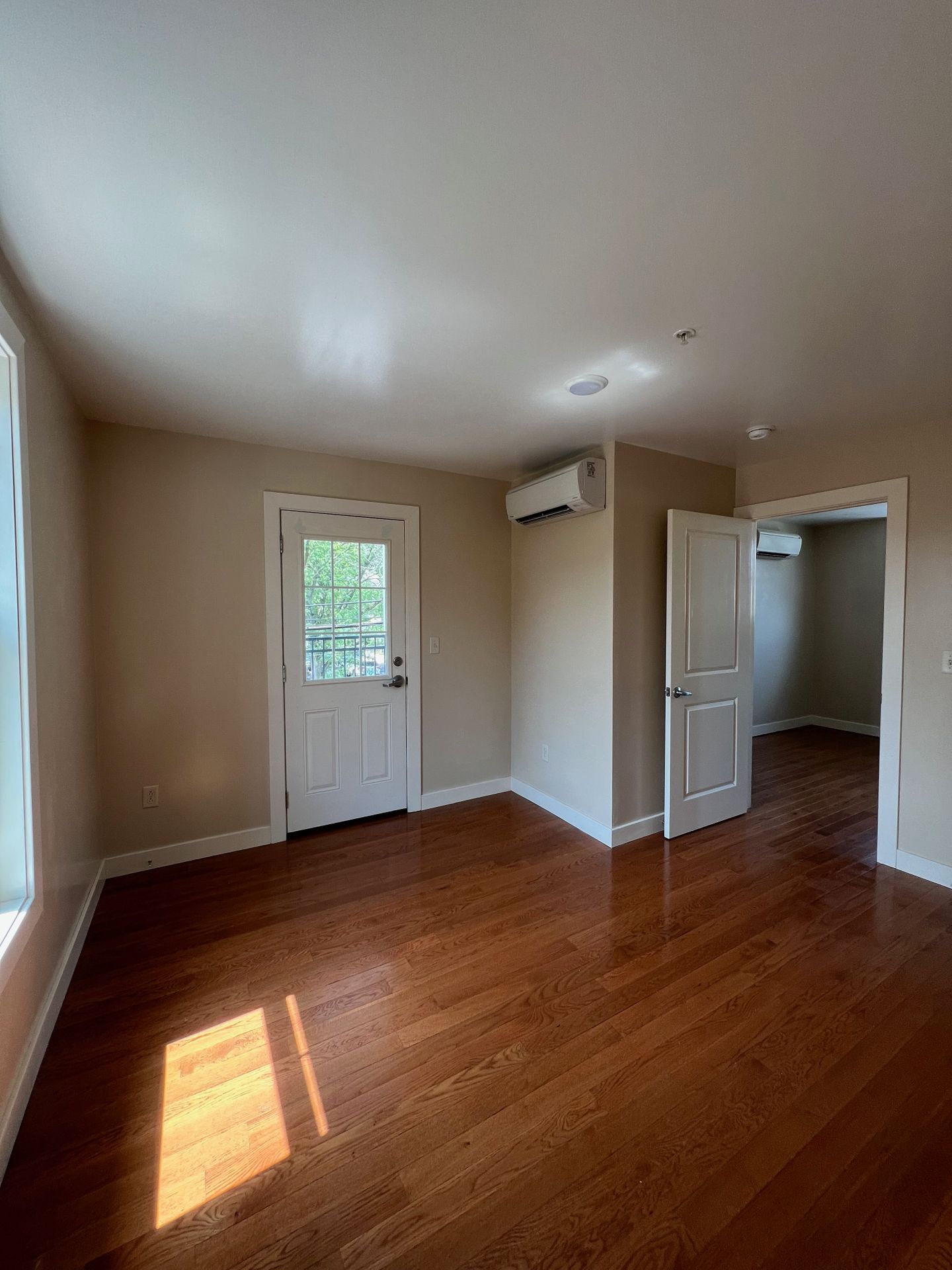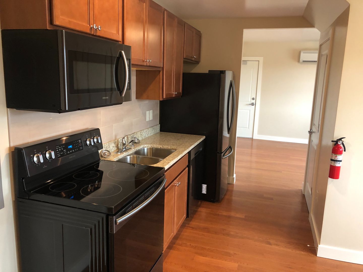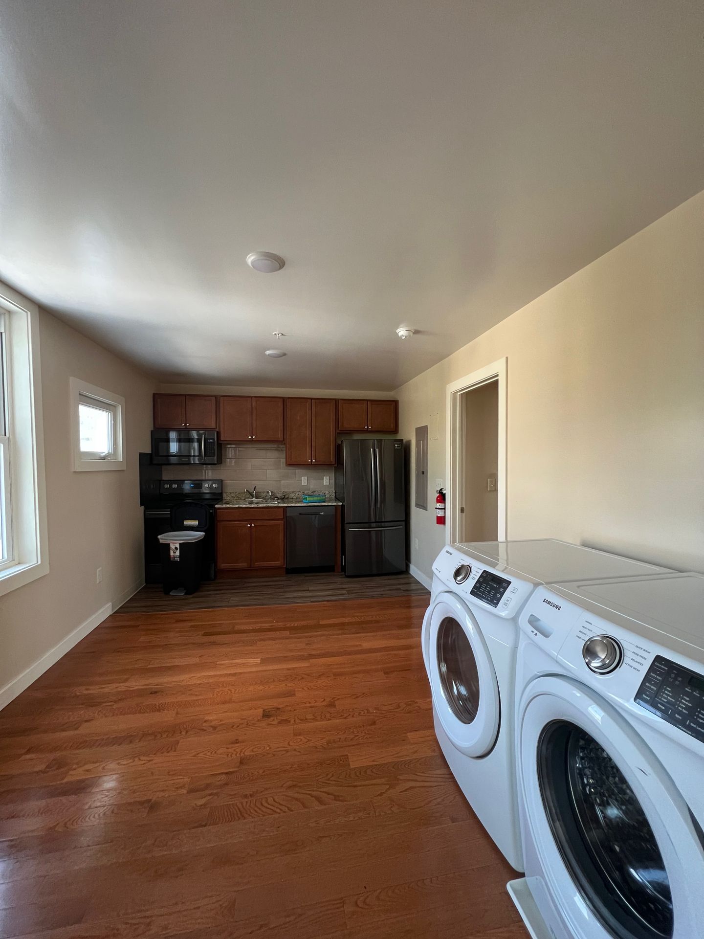 The rent listed is for the entire apartment! Discover your dream living space in this beautifully renovated 2-bedroom, 2-bathroom upscale apartment, perfectly situated in the heart of downtown just 1.5 blocks from campus. The apartment offers tons of natural sunlight with stunning views of Old Main. This top-floor gem features a private balcony. Inside, you'll find hardwood floors, a modern kitchen with stainless steel appliances and granite countertops. The apartment is equipped with mini-split units for personalized heating and air conditioning, along with the convenience of a stackable front-loading washer and dryer. Experience luxury living just steps away from campus.